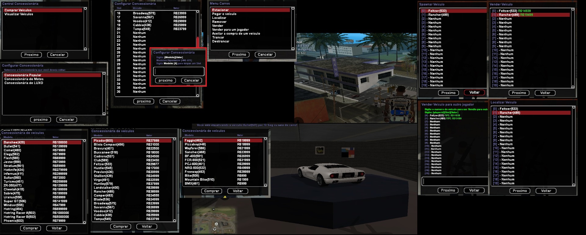 •> Veiculos são adicionados/removidos da conse in-game por comando pelo fundador, tem limites predefindos de até 100 veiculos por padrão, mas pode ser aumentado este limite, pois não tem limite, so está predefinidos.